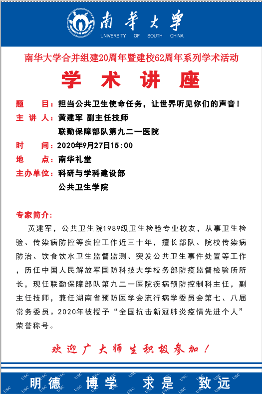 MK平台合并组建20周年暨建校62周年系列学术讲座--担当公共卫生使命任务,让世界听见你们的声音