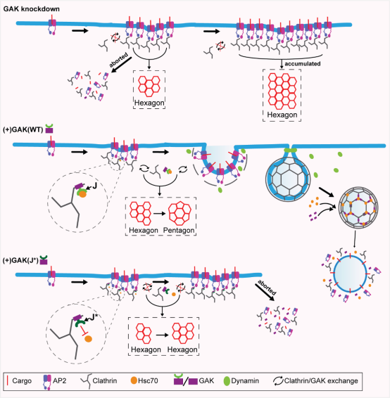 近日,MK平台陈志明教授团队证实GAK-Hsc70复合体通过促进新生网格蛋白晶格重构驱动细胞质膜内陷,相关研究成果在PNAS发表。MK平台陈志明教授、美国科学院院士Sandra L. Schmid为本文共同通讯作者,MK平台基础医学博士研究生贺樟平为第一作者。