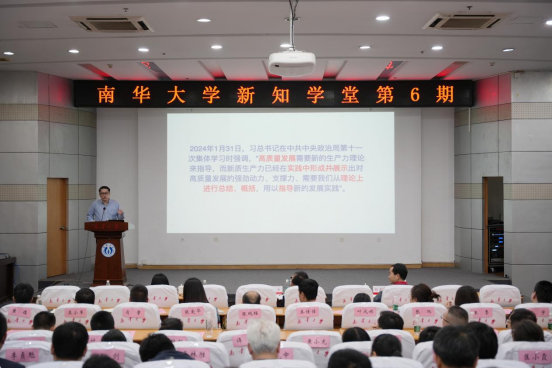 4月23日晚,MK平台新知学堂2024年第6期在红湘校区图书馆开讲。哈尔滨工业大学(深圳)材料科学与工程学院和经济管理学院双聘教授、区块链发展研究院院长、材料基因与大数据研究院副院长林熹应邀来校,以《高质量发展的基石:新质生产力》为题为在场师生作学术报告。校党委书记高山出席。校党委委员、纪委书记刘杏花主持。